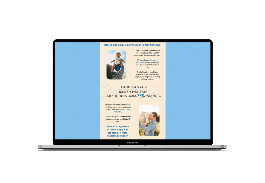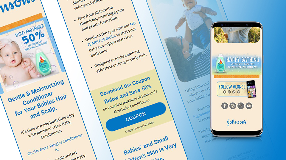 After multiple video chats, mood boards, and discussions we began the journey of creating a newsletter that was drafted towards Johnson & Johnson’s New Tear Free Baby Conditioner.